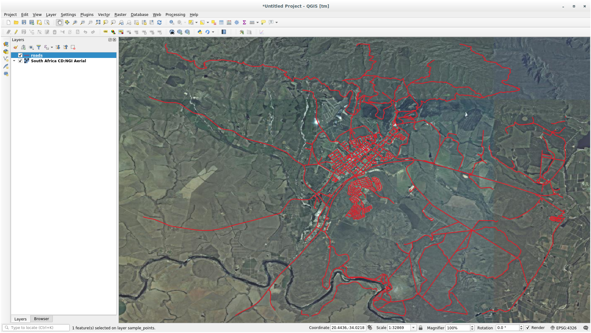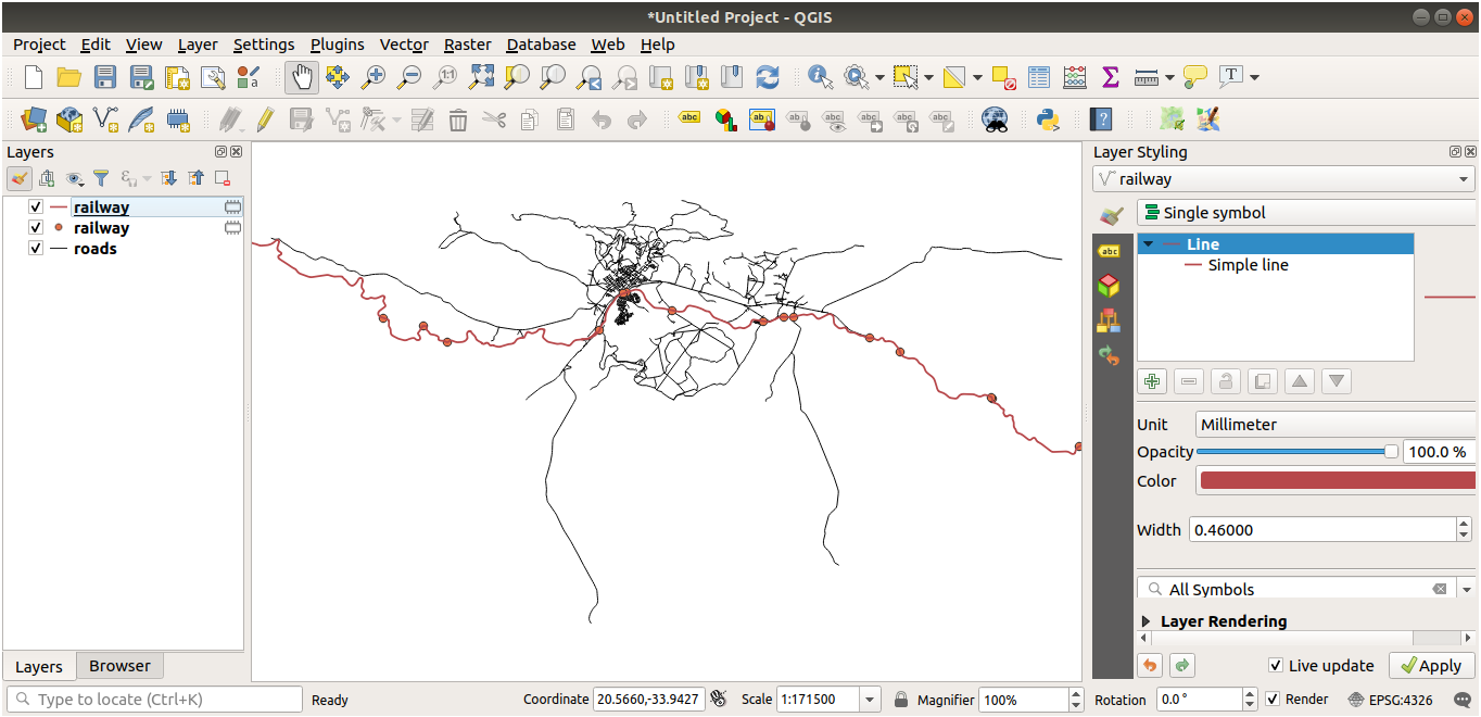 Start a new empty project and add the roads layer from the