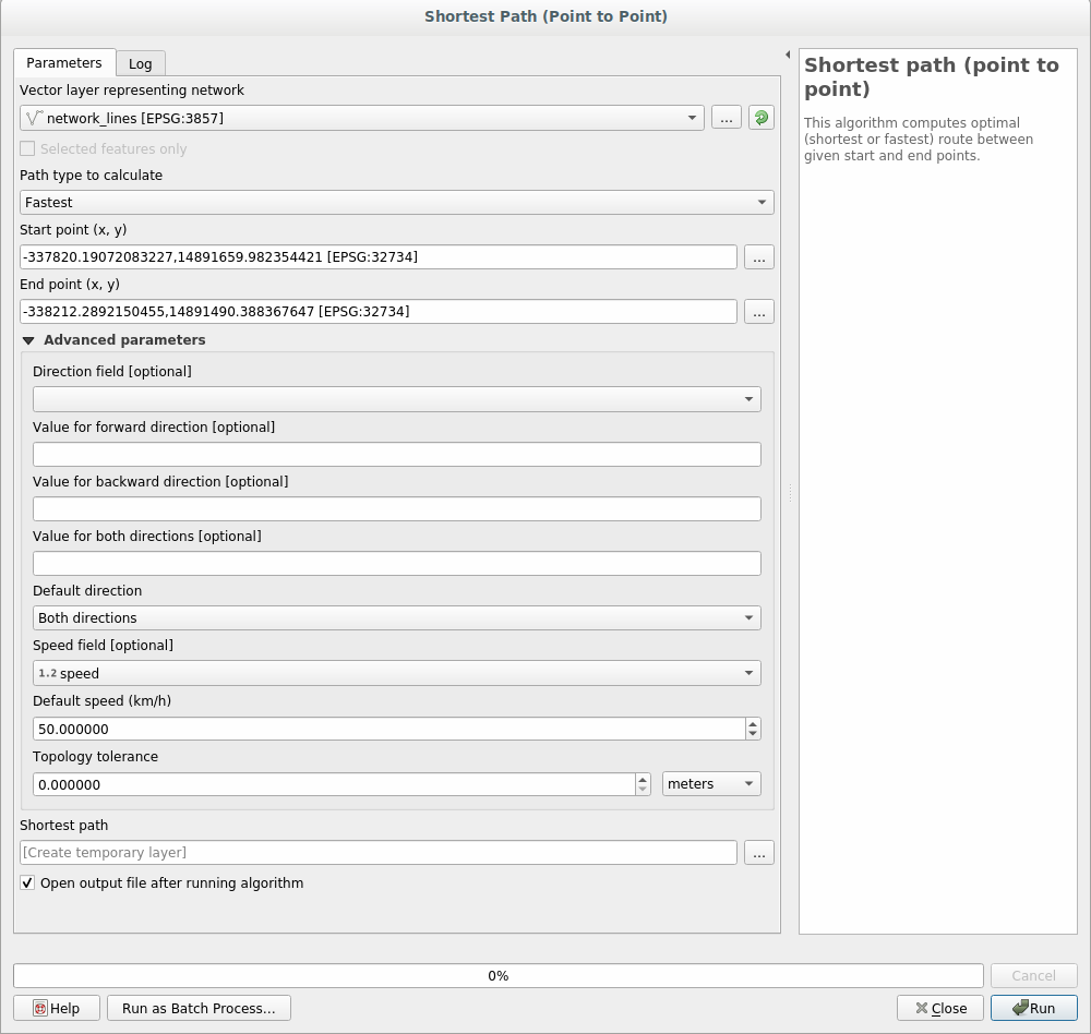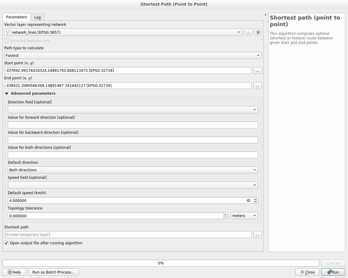 Open the Shortest path (point to point) algorithm
