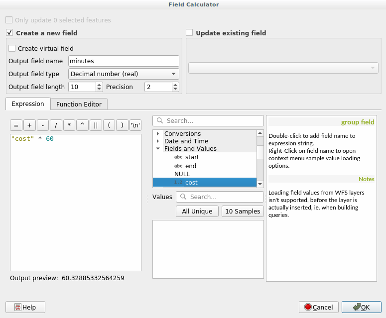 The cost field contains the value according to the speed parameter you have chosen. We can convert the cost field from hours with fractions to the more readable minutes values.
