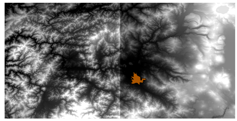 They are in two different files (the city limits fall into just one single raster layer, but, as it’s been said, we want some extra area around it).
