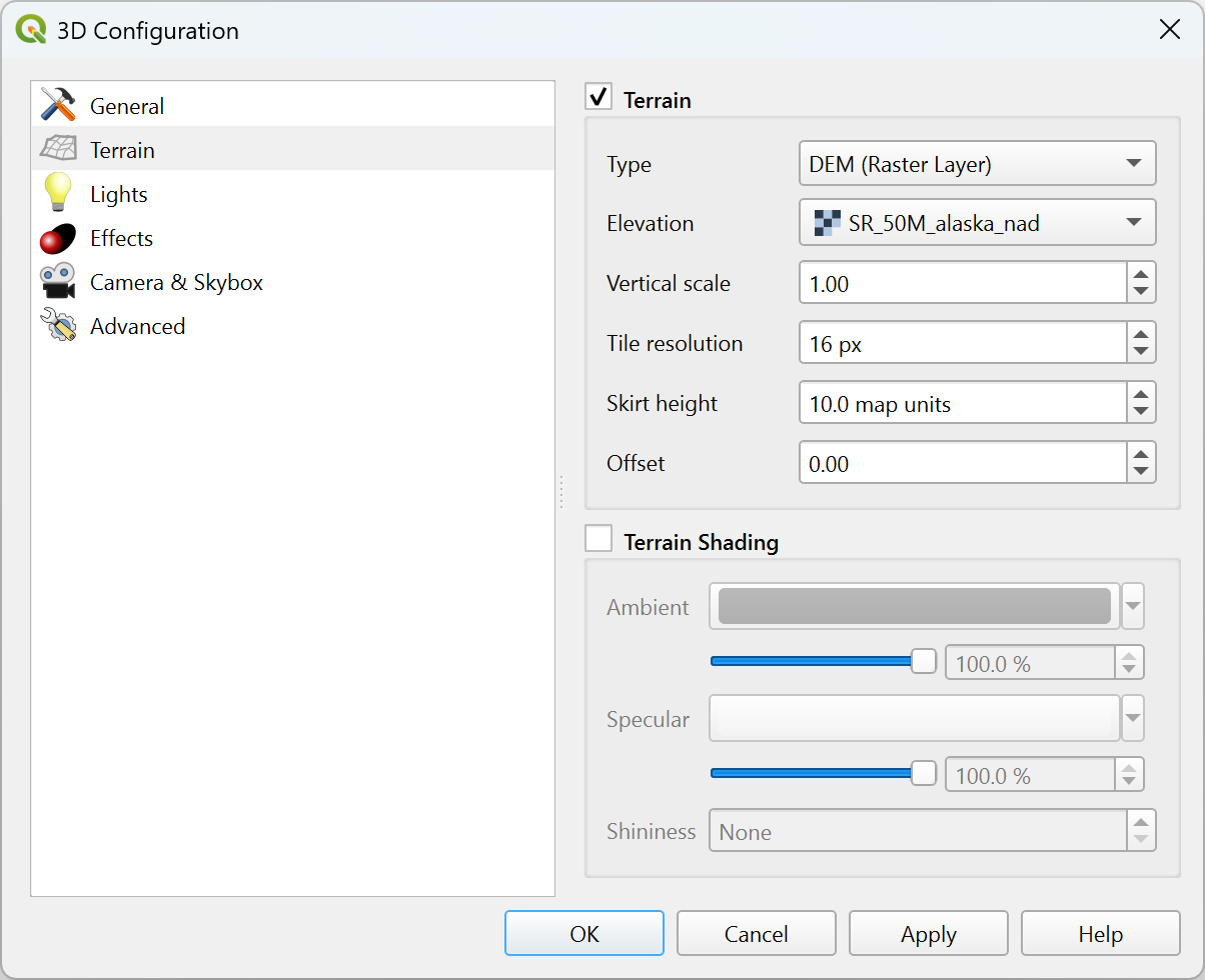 Terrain shading: Allows you to choose how the
