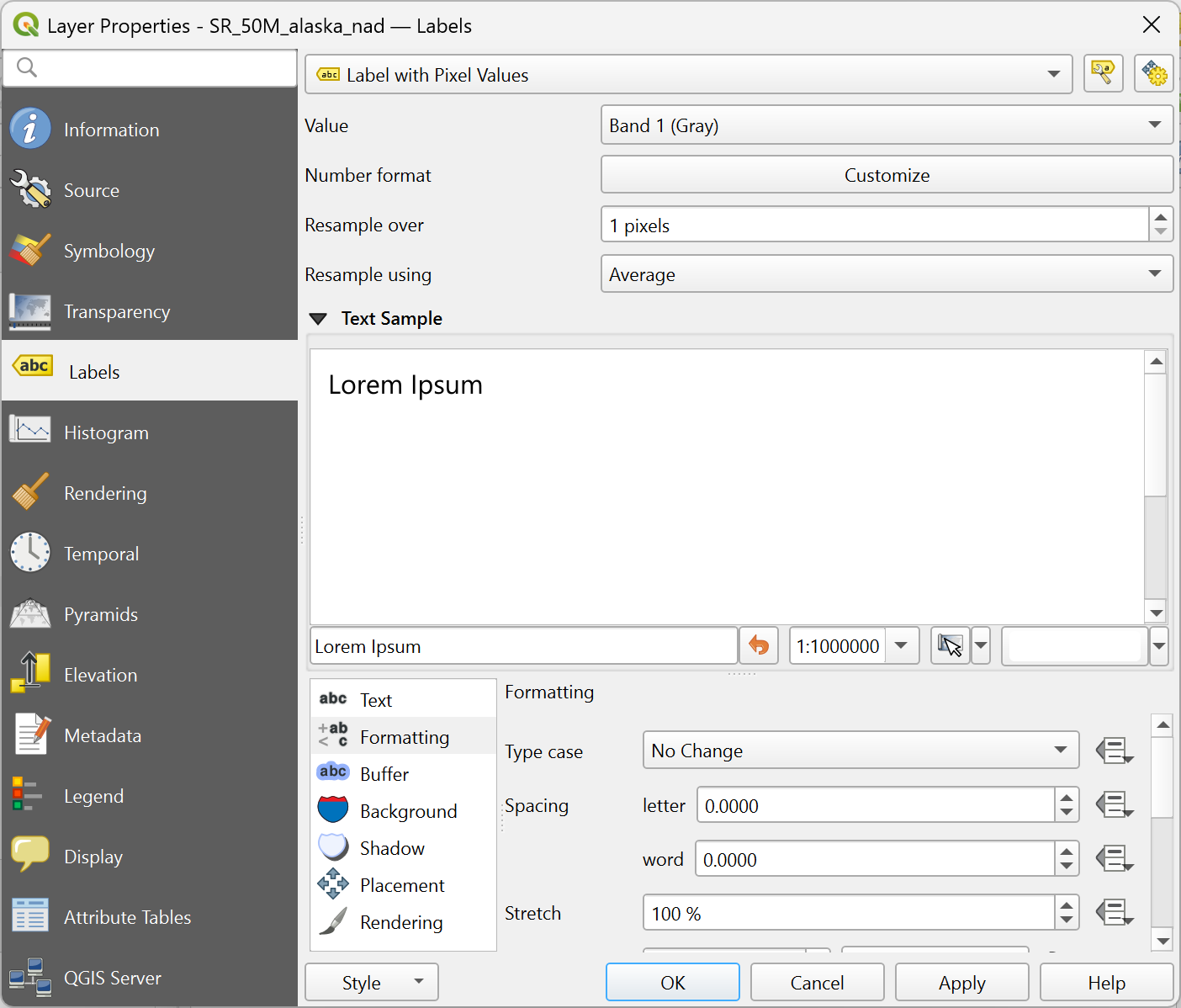 Fig. 13.27 Propriétés raster dans QGIS Server