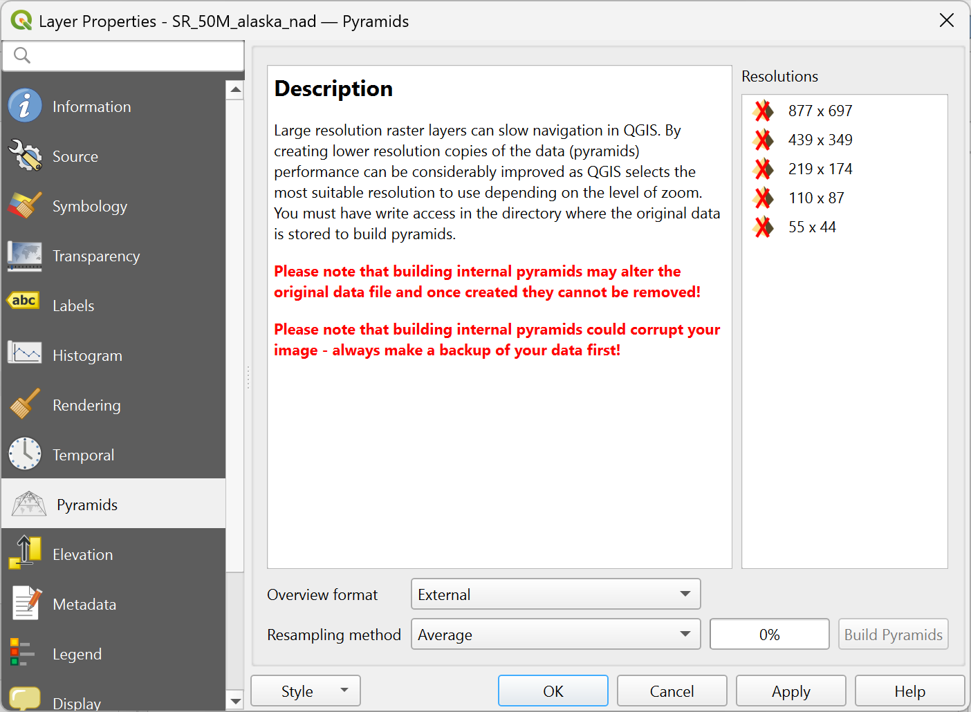 13.1. Fenêtre Propriétés d’une couche raster